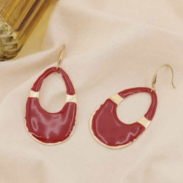 Lilas de Seine, located in Paris in the Marais, presents these stainless steel earrings, enamel, with engraved teardrop-shaped rings. The dimensions are approximately W30xH65mm. These earrings are attached to the pierced ear with a hook clasp.