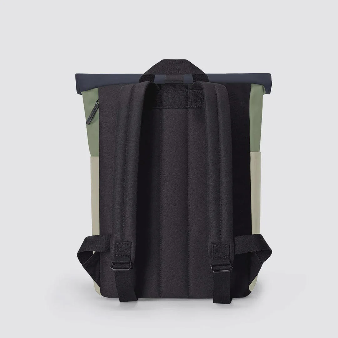 This minimalist backpack is the smaller version of Hajo Medium Backpack (about a quarter smaller). Whether on the road by bike, shopping or in the nightlife, it’s suitable for any occasion. The roll-top closes with a hook and loop fastener and allows a practical filling of the Hajo Mini Backpack which features a zipped compartment on the outside.