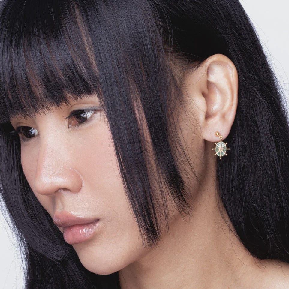 Regal colours and regal shapes. Our 8 point star makes a splash of colour with its green enamel and pink Rhodonite centre stone